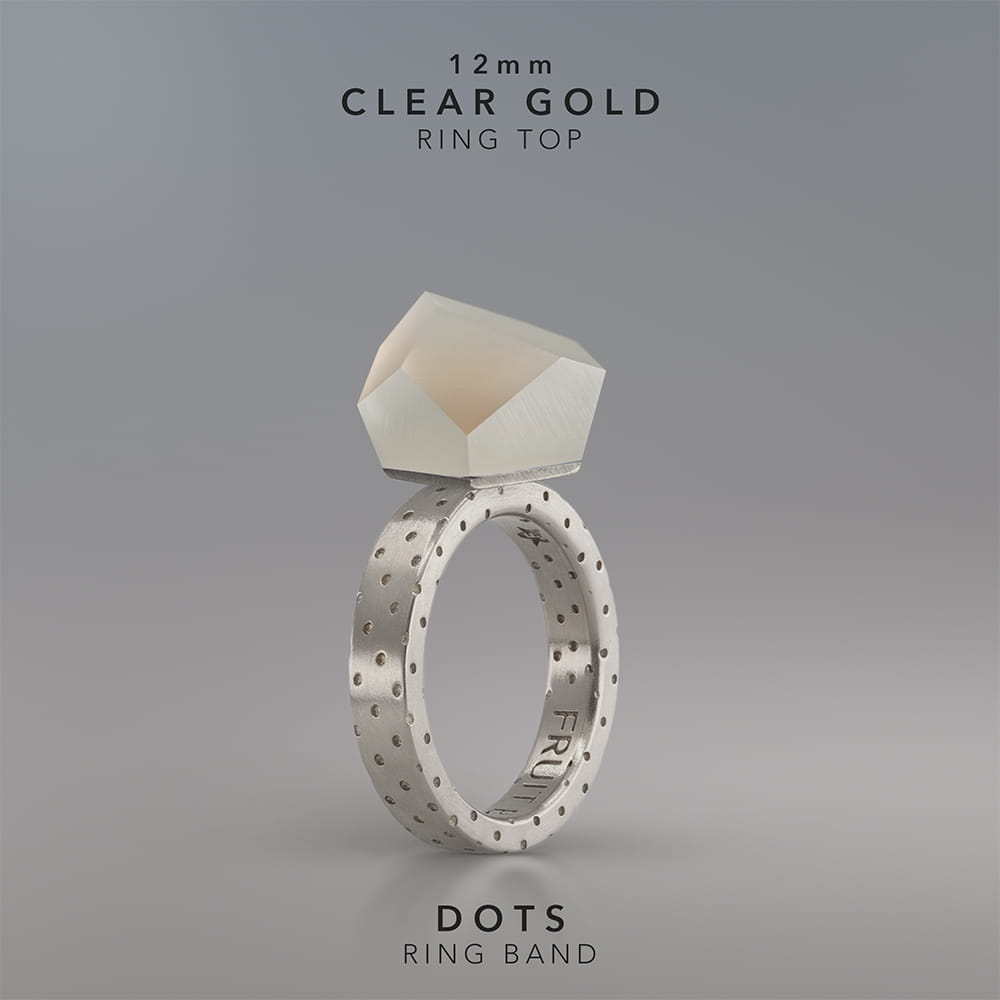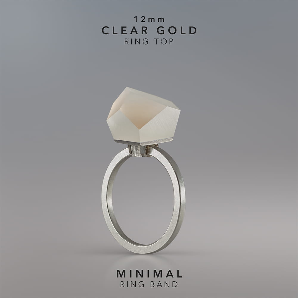 It consists of an interchangeable crystal top and a modular ring band that forms the foundation of the composition.