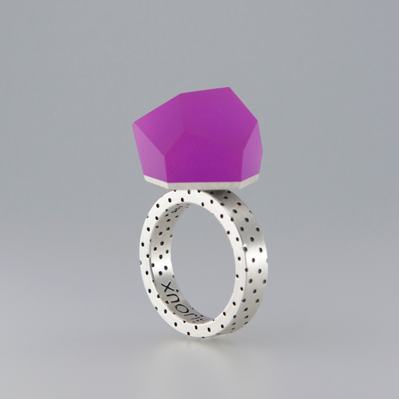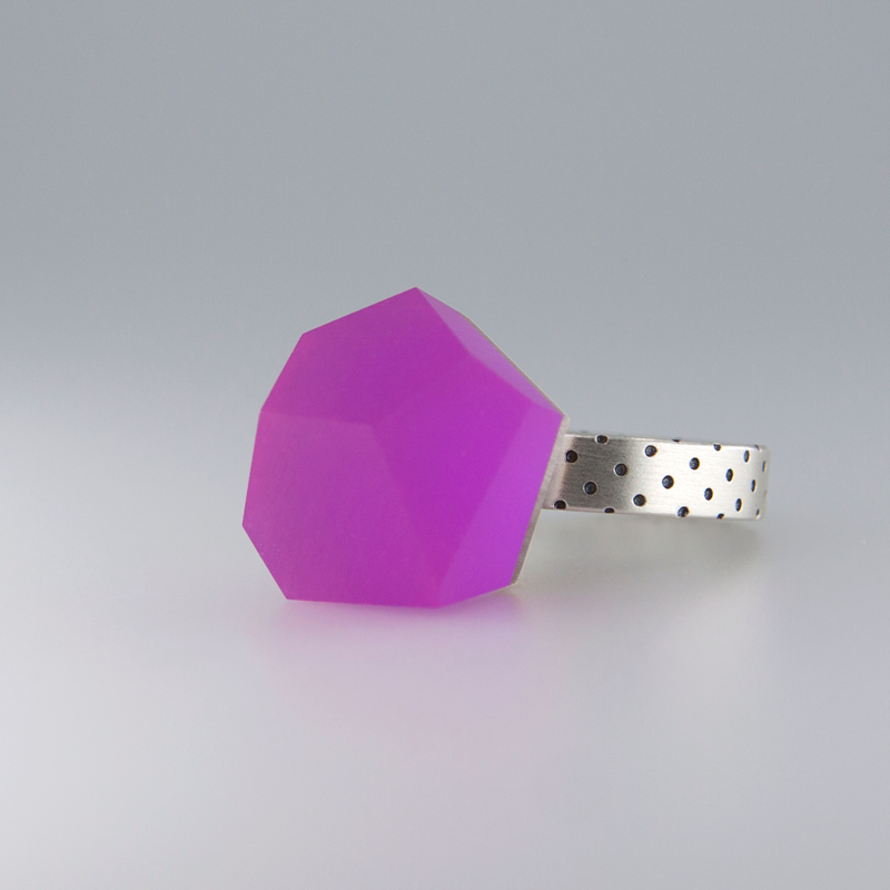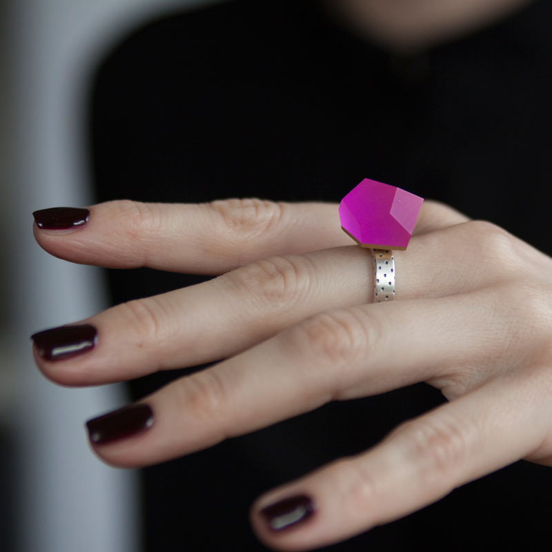 RING: VU CRYSTALS 16MM MAGENTA PINK + DOTS RING